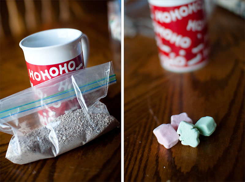In a small sandwich bag add 1/3 cup of the cocoa mixture and close.